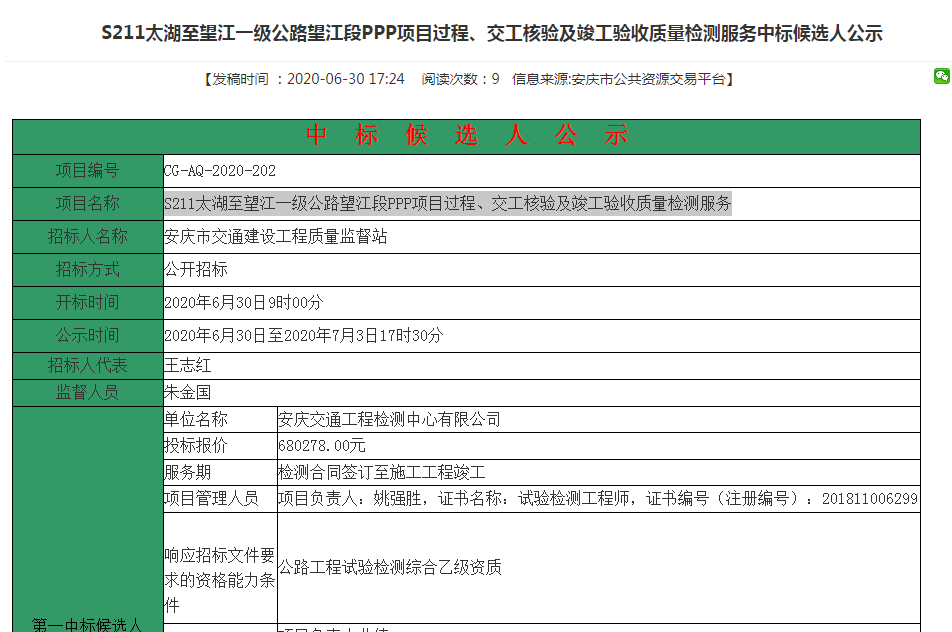 公司中標(biāo)S211太湖至望江一級(jí)公路望江段PPP項(xiàng)目過程、交工核驗(yàn)及竣工驗(yàn)收質(zhì)量檢測服務(wù)項(xiàng)目,這是公司資質(zhì)升級(jí)后中標(biāo)的第一個(gè)一級(jí)公路檢測項(xiàng)目,為公司打開一級(jí)公路檢測市場奠定了堅(jiān)實(shí)的基礎(chǔ)。