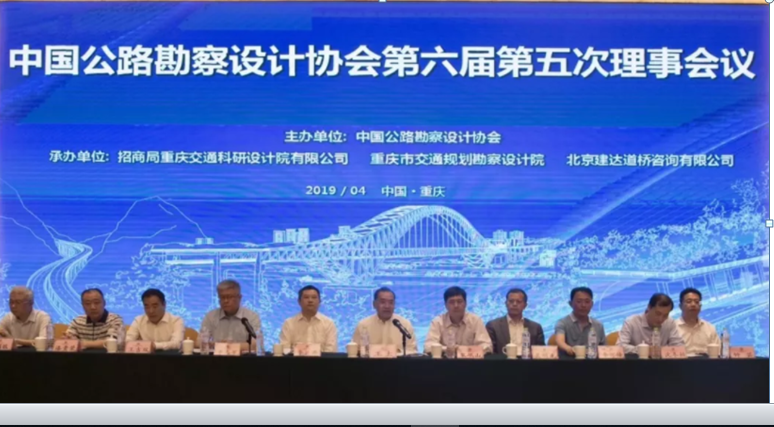 2019年4月27日,由中國公路勘察設(shè)計(jì)協(xié)會主辦,招商局重慶交通科研設(shè)計(jì)院有限公司、重慶市交通規(guī)劃勘察設(shè)計(jì)院、北京建達(dá)道橋咨詢有限公司承辦的中國公路勘察設(shè)計(jì)協(xié)會第六屆第五次理事會在重慶召開。交通運(yùn)輸部公路局副局長王太、重慶市交通局副局長李關(guān)壽、中國公路勘察設(shè)計(jì)協(xié)會理事長裴岷山等出席會議并講話。會議分別由協(xié)會副理事長李志軍、王吉雙主持,來自全國30個(gè)省市共277名代表參加了會議。